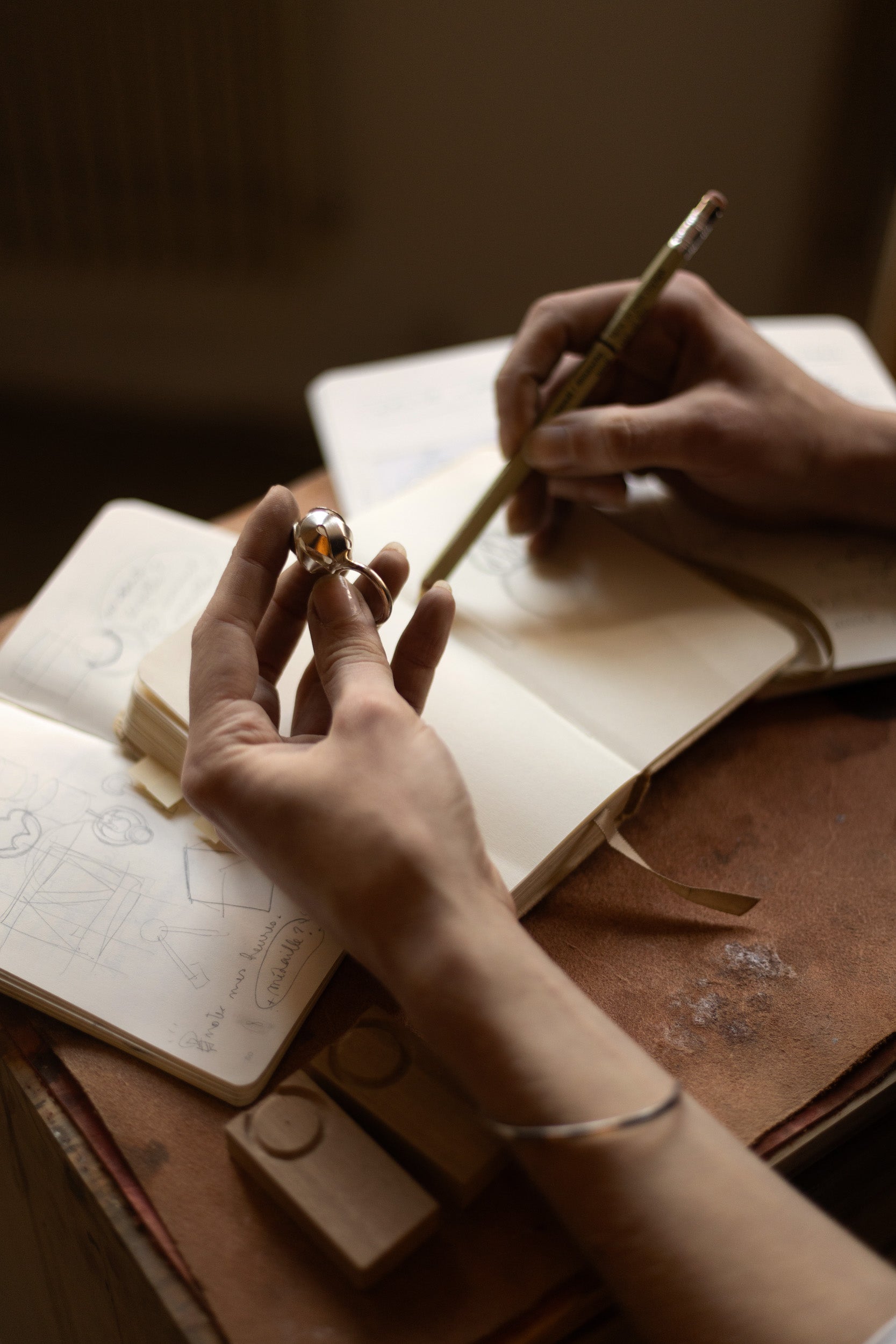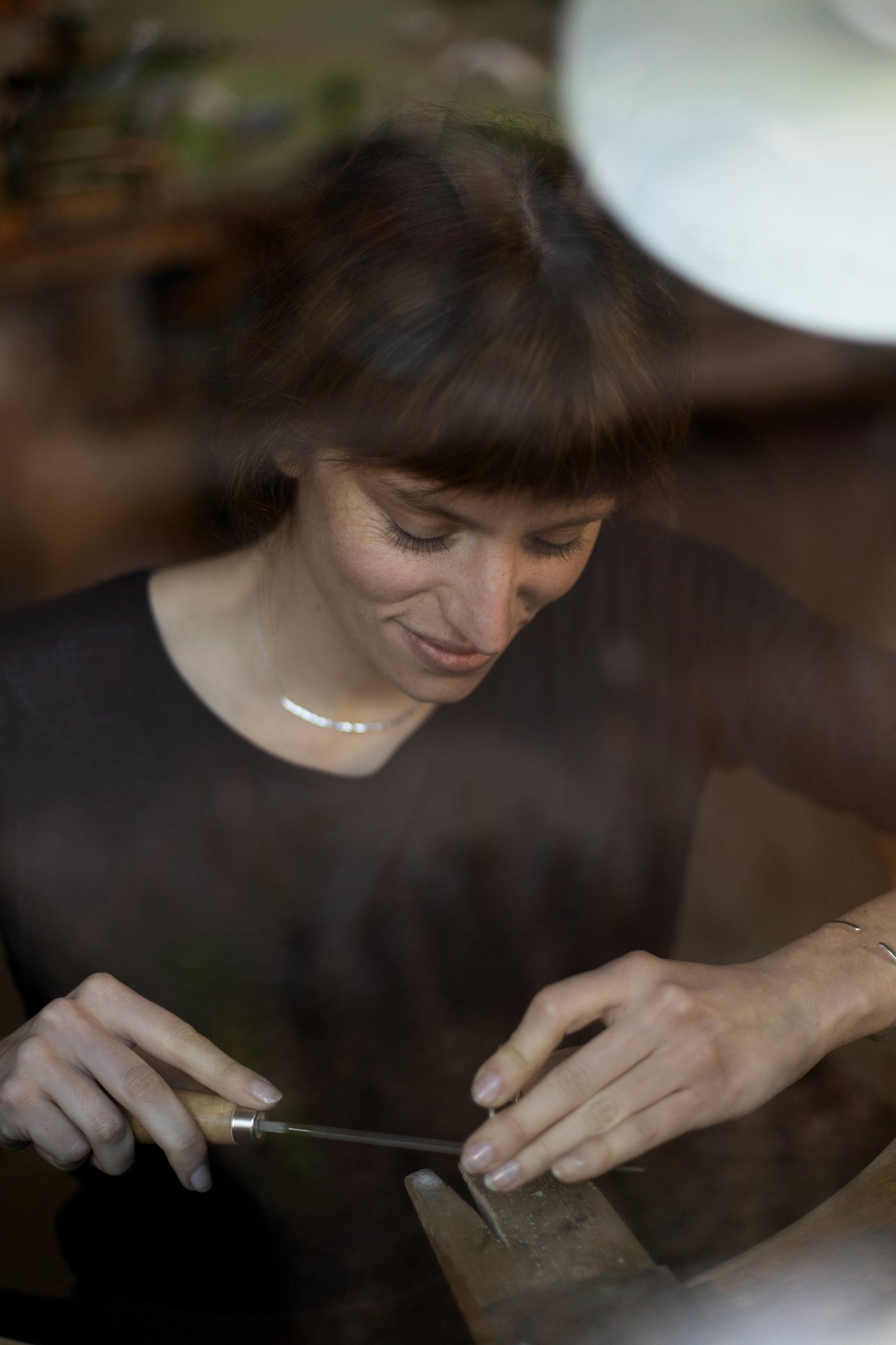 Je me forme en CAP, puis en diplôme des métiers d’art, avant d’intégrer l’atelier bijou de la Haute école des arts du Rhin dont je suis diplômée en 2021. Quelques mois plus tard, je m’installe dans l’intimité d’un petit atelier où les premières pièces de ma collection voient le jour.