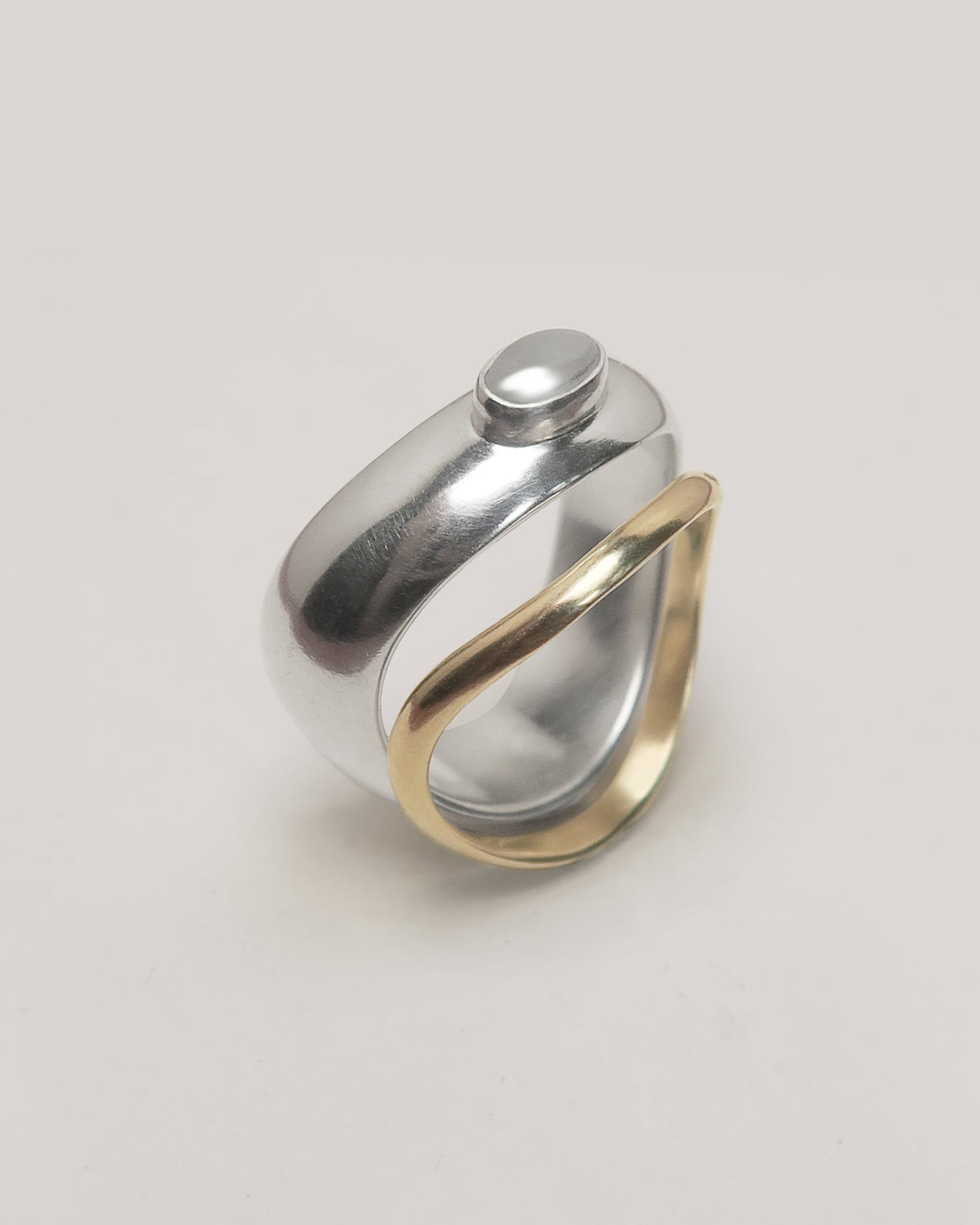 Bague réalisée grâce aux techniques d'impression additive et de fonte à cire perdue. Réalisée sur commande en argent, laiton plaqué or, et or 14k.